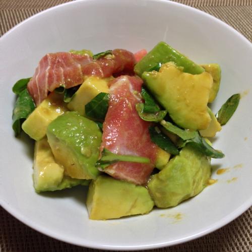 アボカドマグロ、アジのアマニ焼き、アマニパン、でオメガ3づくし