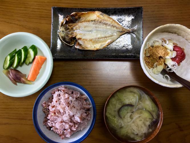 朝はアジの健康食でした。