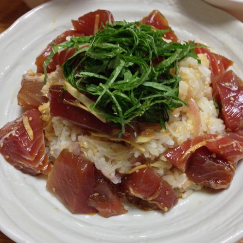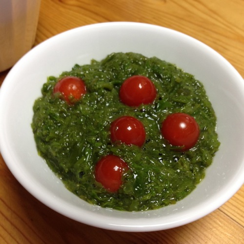 外食の場合、魚介類のDHA.EPAを除くとオメガ3系の油を摂ることはまず不可能です。ということで、イタリアンを楽しんだ翌日はかつおのお寿司でオメガ3の補給に努めます。めかぶでミネラルも補給します。