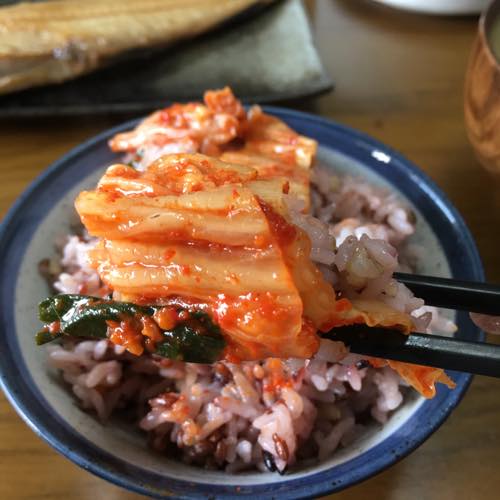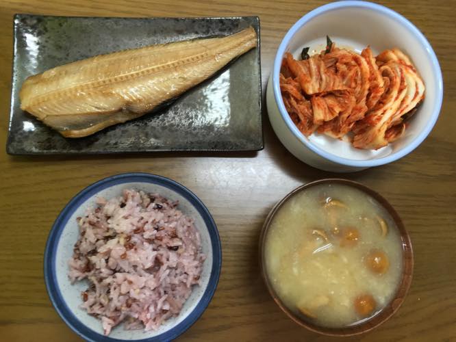 朝はホッケ(DHA.EPA)と前日のキムチでごはんがすすみました。