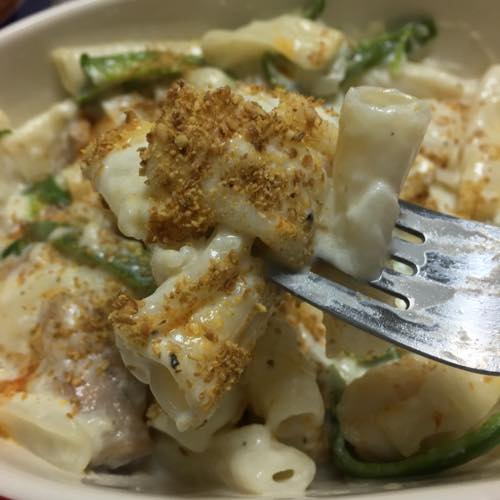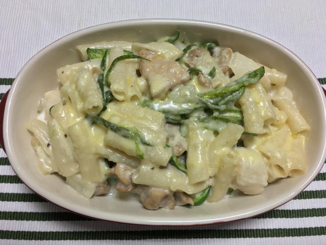 マカロニ・ホタテ・鶏肉・ネギ・ピーマン