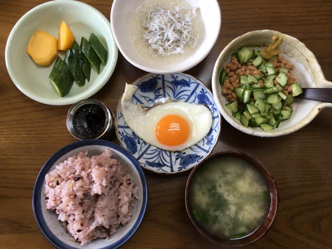 雑穀ご飯・目玉焼き・しらすおろし・に