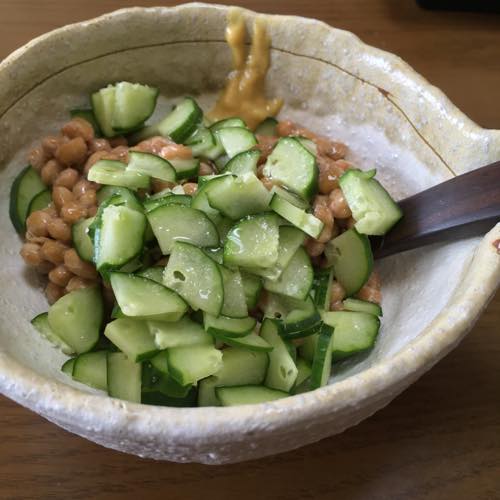 今日はイワシやアジの干物がなかったので、納豆にアマニ油を足しました。