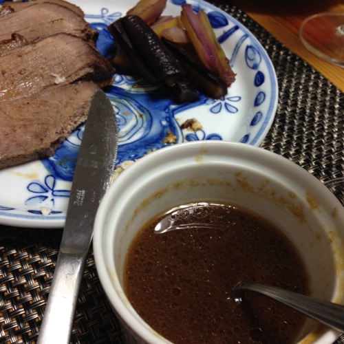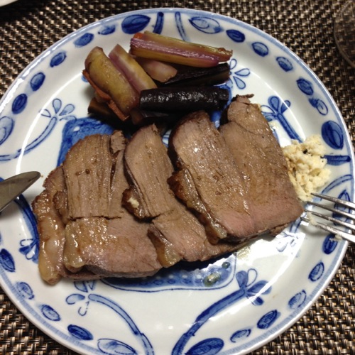 今夜のぶどう牛もそのひとつ。ワインの"ぶどう粕"を加えたオーストラリア産牛で、肉の隅々まで旨味が行き渡っています。同僚のIさんのお陰で手に入ったので大好きなローストビーフにしました。