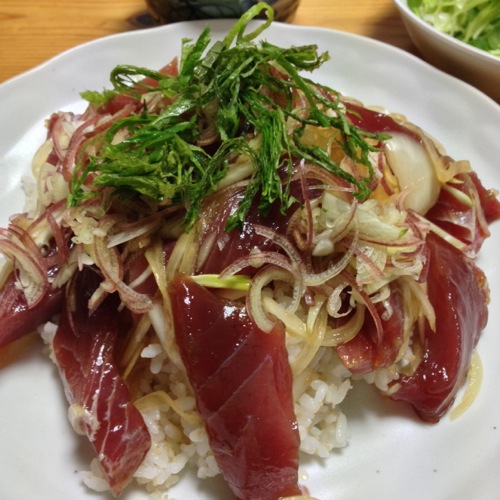 鰹・玉ねぎ・アマランサス・シソ・茗荷