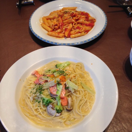 サーモンと野菜のクリームパスタ & ペンネ アラビアータ