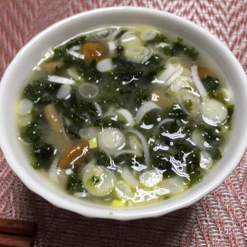 なめこ・長ネギ・アオサの味噌汁