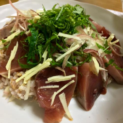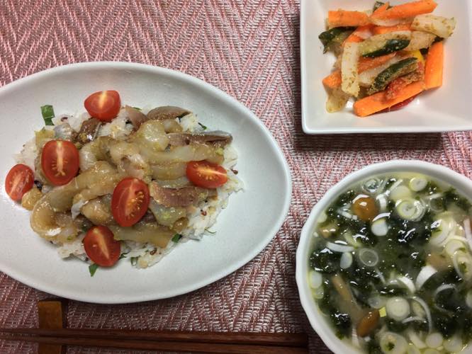 今夜はイワシとカレイのサラダごはんです。