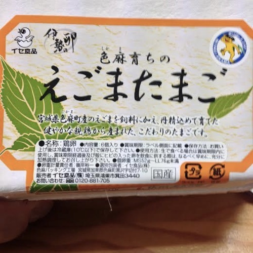 ”宮城県色麻町特産のえごまを飼料に加えました。必須脂肪酸のひとつであるα-リノレン酸を豊富に含んだこだわりの卵です。 ”