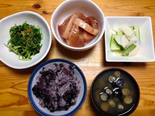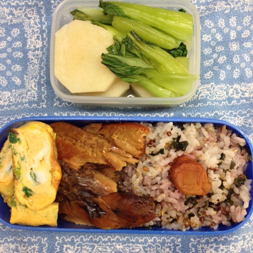 お昼はなまり節と玉子焼き、野菜のお弁当でした。