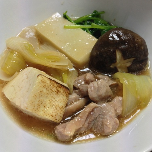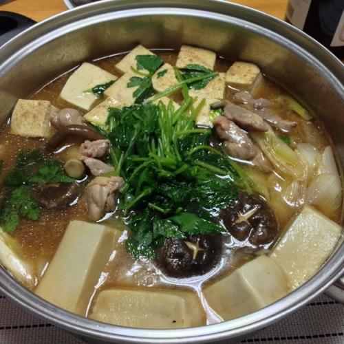 鴨・長ネギ・玉ねぎ・三つ葉・椎茸・生麩