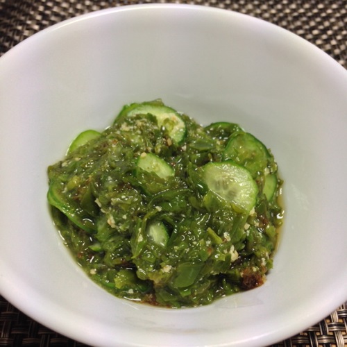 グリーンカレー麺(米麺)とめかぶキュウリ