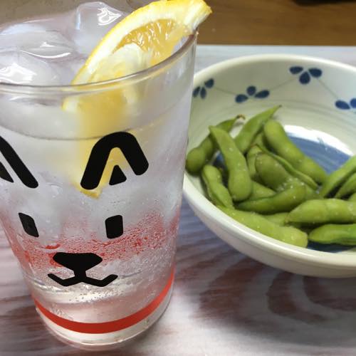 枝豆に麦焼酎ソーダ