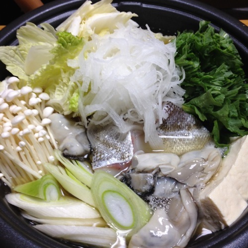 真鱈・牡蠣・白菜・春菊・えのき・長ネギ・大根