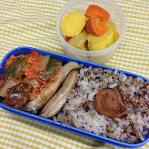 お昼は野菜の味噌煮と鯖のお弁当でした。