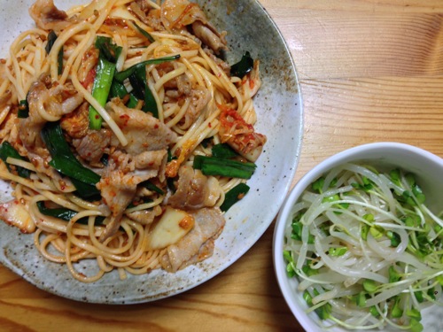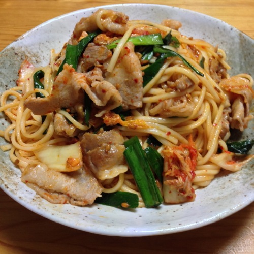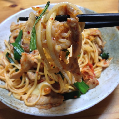 キムチ・豚肉・ニラ・ロースト亜麻仁粒