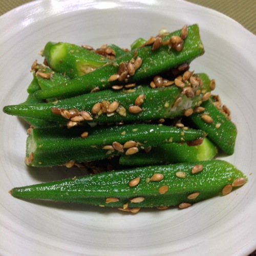 オクラとアマニ粒の醤油こうじ和え
