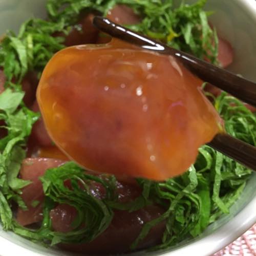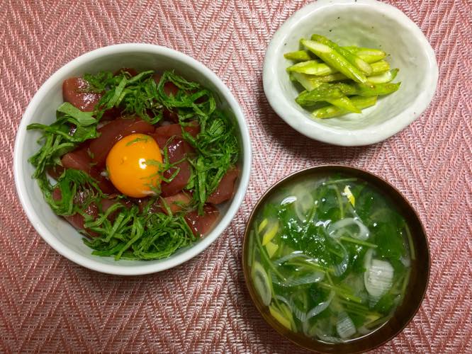 という訳で、本マグロのメジ(幼魚)の漬け丼の夕飯です。