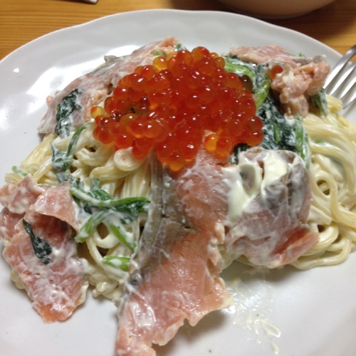 若い世代のためのレシピを考えていると、若い頃は頻繁に作って好評だったこってり系のメニューが浮かぶのですが、最近すっかりあっさり系が主流の我が家ではちっとも食べていなかったことに気が付きました。そして、新しく提案するにはマスカルポーネか生クリームどちらでいこうかか迷ってしまったので、おそらくこちらだと思う方を試してみました。それが今夜のパスタです。