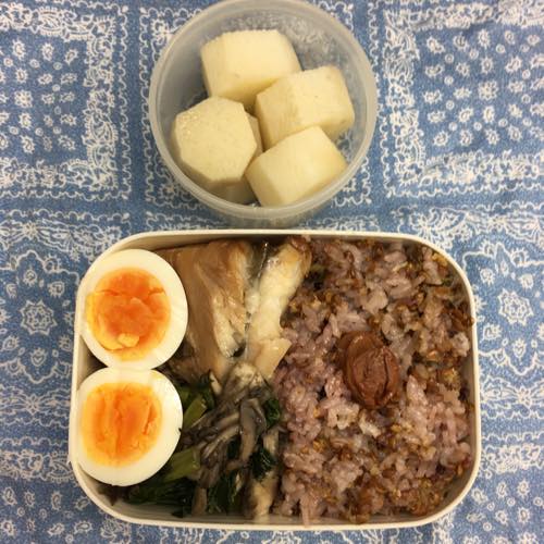 お昼はサバとオメガ3たまご、野菜のお弁当でした。