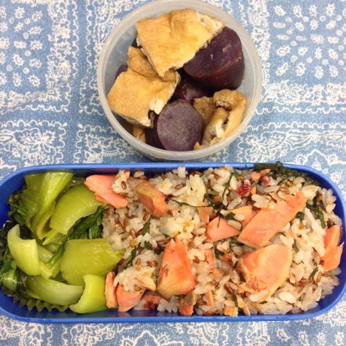 お昼はほぐした鮭に梅を和えたご飯と野菜のお弁当でした。