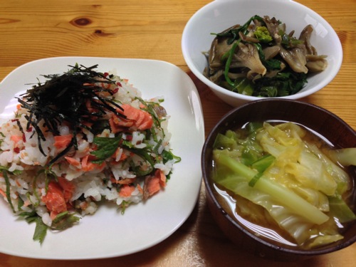 珍しく平日休みが主人と重なったので、一汁一菜に鮭ご飯でノンオイルの温かい朝ごはんです。