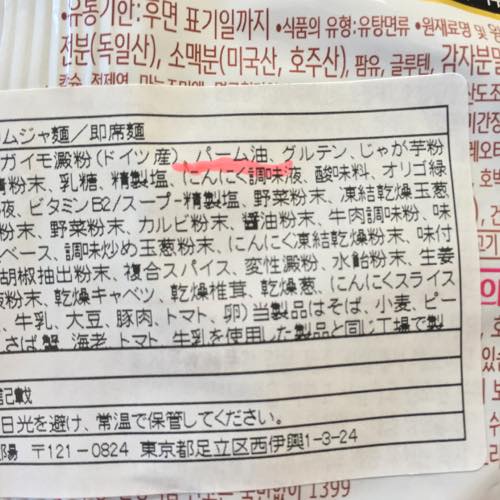 韓国はインスタントラーメンの消費量が日本以上に多いのですが、成分表示は日本よりかなり細かいです。
