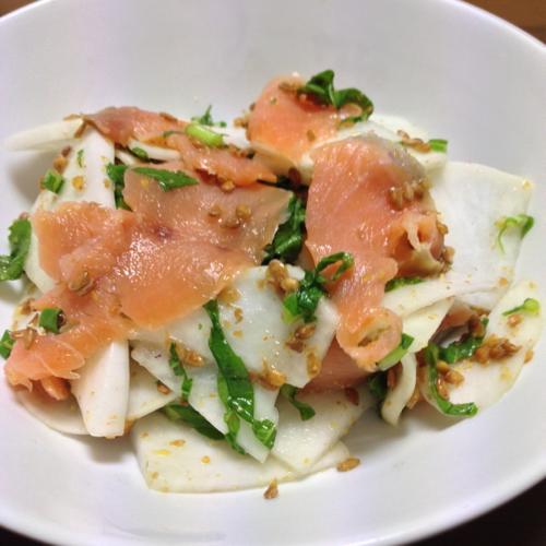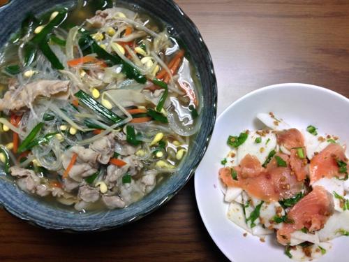 低糖質の緑豆春雨スープ&スモークサーモンのサラダ