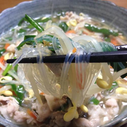 食物繊維は緑豆春雨の方が多いのでこちらを使うことが多いのです。