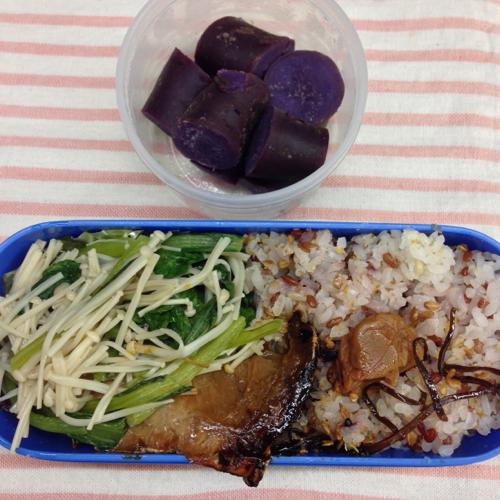 お昼はブリと紫芋、野菜のお弁当でした。