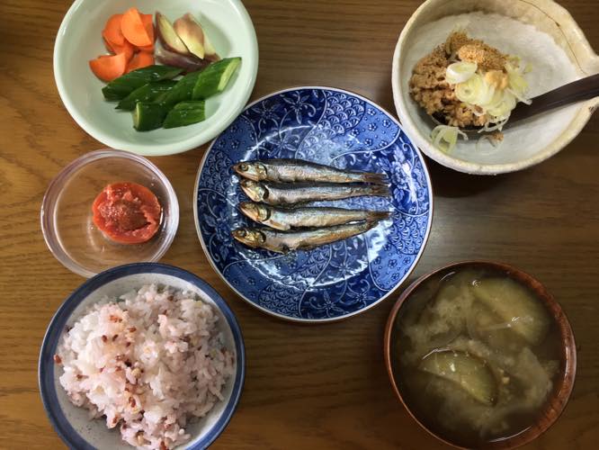 八助梅(あんず)のしそ漬けとカタクチイワシの朝ごはん