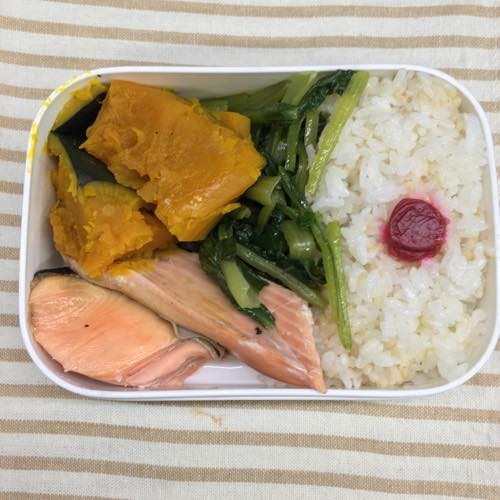 お昼は鮭と野菜のお弁当でした。
