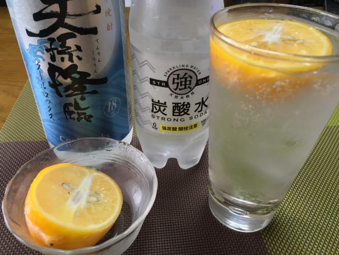 お供は、焼酎に強炭酸、凍らせたレモンでした。これもオイシイ!