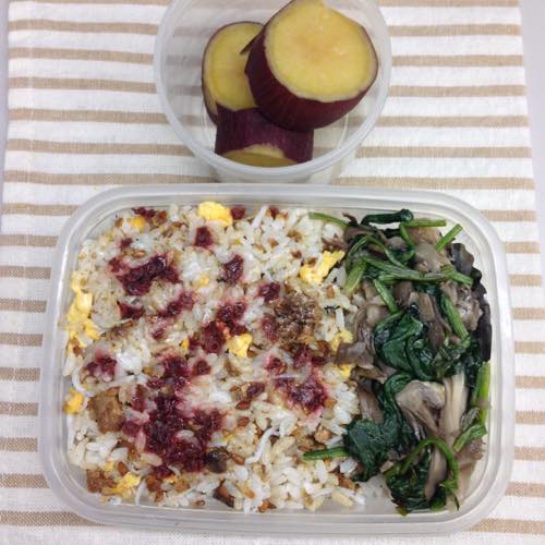 お昼はシラスとサバの混ぜご飯弁当でした。