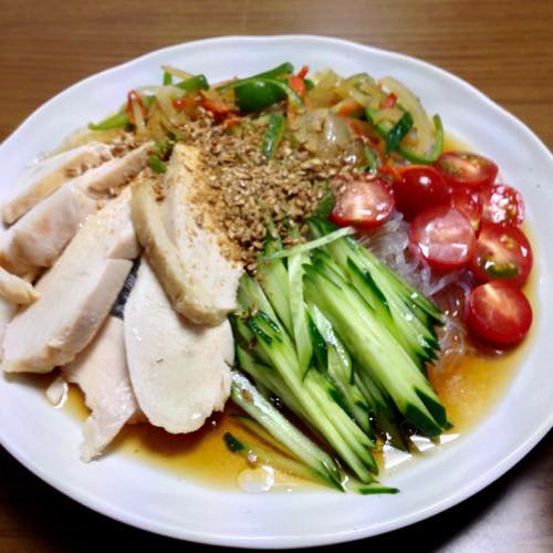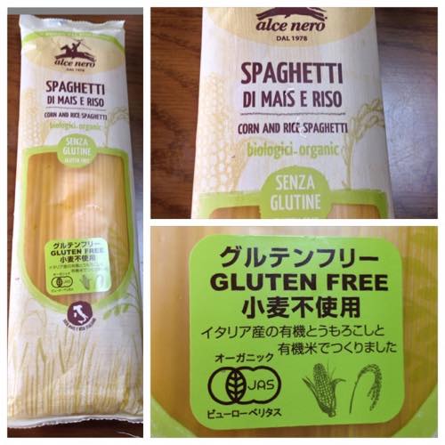 買い置きしてあったグルテンフリーの米粉ととうもろこし粉のパスタの夕飯です。