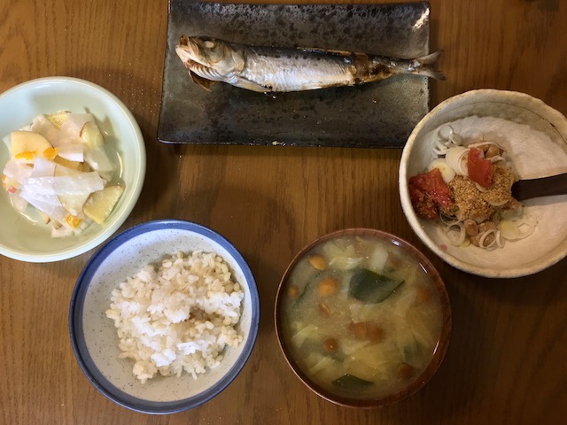 朝はイワシ(DHA.EPA)の健康食でした。