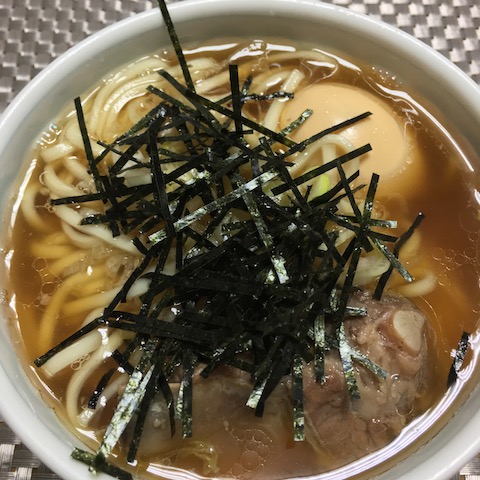 豚大根のの出汁がもったいないので、〆のうどんにしました。