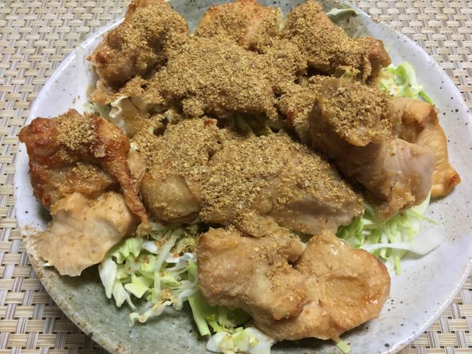越前白山鶏(モモ、ムネ)・ニンニク・生姜・醤油・みりん・米粉・ローストアマニ粉