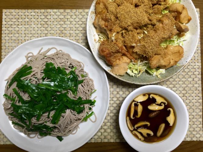 今夜は休肝日ですが、揚げ油を使わない鶏カラとニラそばにしました。