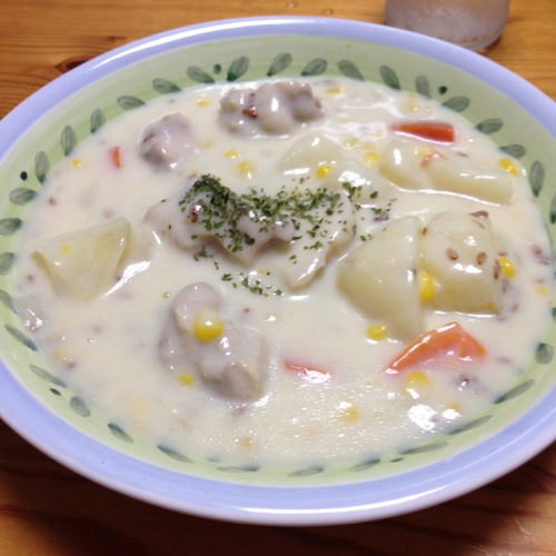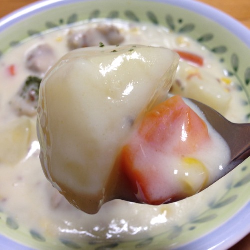 ジャガイモ・人参・玉ねぎ・ローストアマニ粒・鶏モモ・コーン・パセリ粉