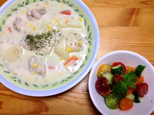 塩・胡椒・米粉・粉チーズ・豆乳・EXVオリーブオイル(キヨエ)