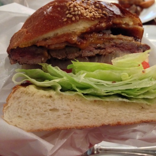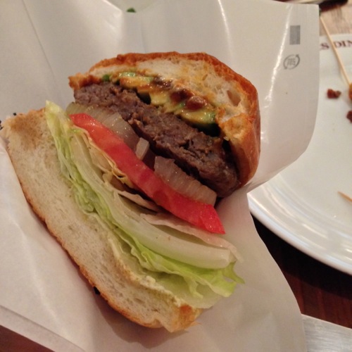 若い人と外人さんで大賑わいのお店のハンバーガーは甘めのソースで肉の味は薄め。