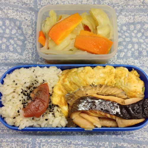 お弁当は 鮭、玉子焼き、野菜でした。