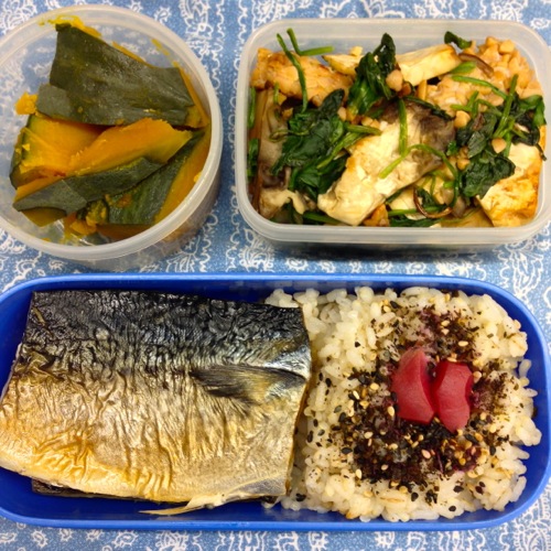 お昼は鯖(DHA.EPA)と野菜のお弁当でした。