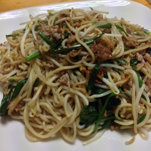 もやし・豚挽き肉・ニラ・日本蕎麦