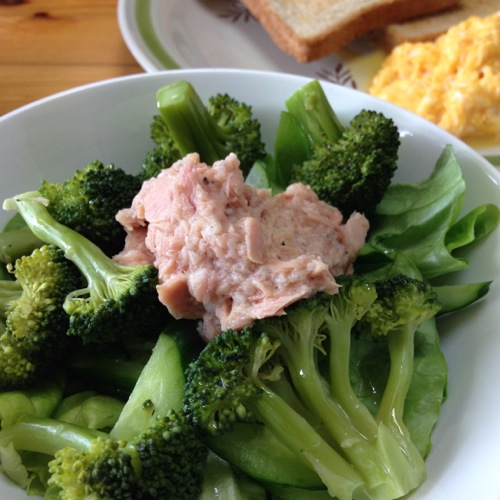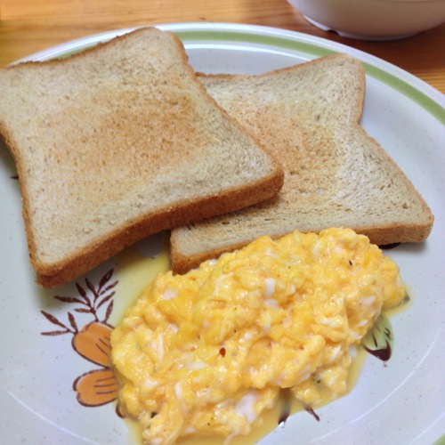 リノール酸を減らすために、サラダ油やキャノーラ油を使わないと料理の幅が狭まると思われがちですが、決してそんなことはありません。例えば今日のスクランブルエッグもテフロンのフライパンで玉子に火が通りきらない内に盛り付ければノンオイルですみます。テフロン加工が嫌だという方は油のいらないフライパンも市販されていますので利用したら良いのではないでしょうか。