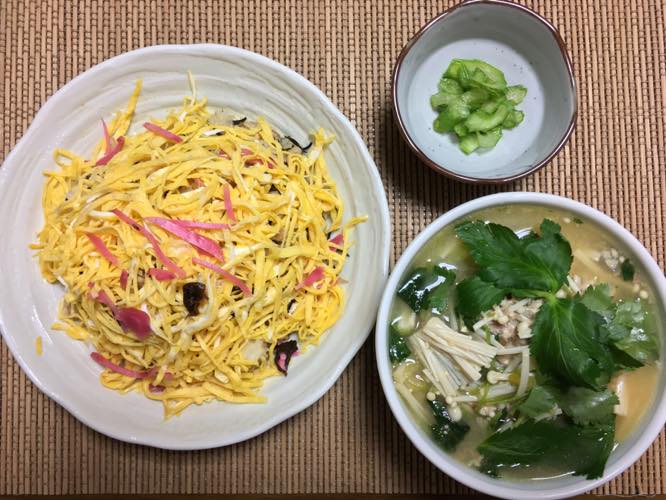 混ぜ寿司と秋刀魚のつみれ汁