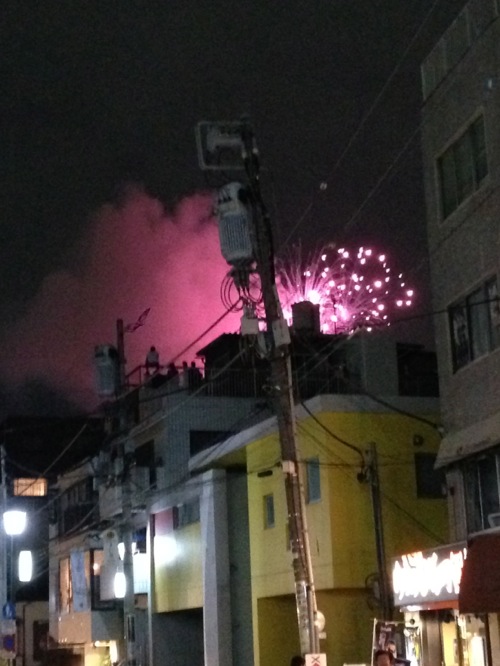 昨日の神宮の花火を近くの通りから見物しようと、主人と鳶の頭Sさんを誘いました。花火の打ち上げの7時半まで炉端焼きの「七代目 寅」さんで軽く一杯。その後外苑西通りからビルの谷間の花火のかけらを見て、BUCHIの姉妹店「ボングウ・ノウ」さんでワイン。楽しい会話の〆に無化調ラーメンの「AFURI 恵比寿」でゆず塩ラーメン。羽目を外した夜でした。