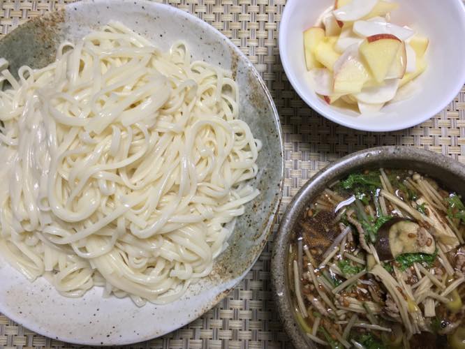 夕べは主人が外呑みで、食道が荒れて痛いので熱いものはNGだと連絡があったので、つけうどんの夕飯にしました。^.^;