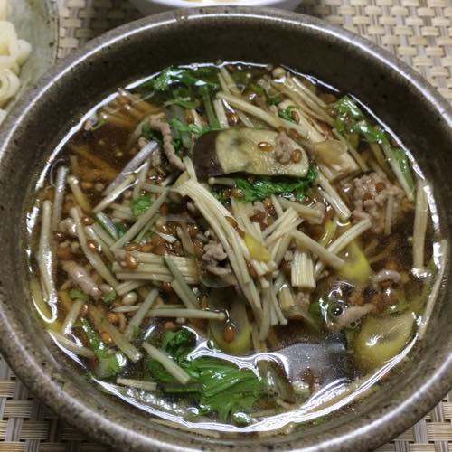 エノキ・長ネギ・ナス・水菜・豚挽き肉